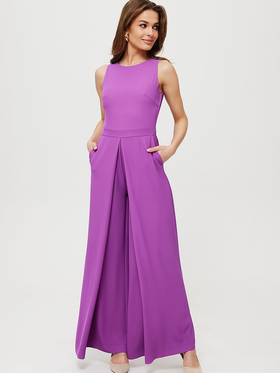 Ten wyjątkowy kombinezon to kwintesencja nowoczesnej elegancji, stworzony z najwyższej jakości tkaniny, która łączy w sobie komfort i styl. Fason kombinezonu jest dopasowany górą, podkreślając subtelnie kobiecą sylwetkę, jednocześnie pozostawiając miejsce na swobodę ruchów. Bezrękawnikowy design sprawia, że kombinezon jest idealnym wyborem na cieplejsze dni, pozwalając jednocześnie na swobodne eksponowanie ramion. Szerokie nogawki z obszernymi zakładkami dodają mu unikalnego charakteru, jednocześnie będąc modnym akcentem, który przyciąga uwagę. Boczne kieszenie nie tylko nadają kombinezonowi swobodnego charakteru, ale również sprawiają, że jest praktyczny i funkcjonalny. Dają one możliwość przechowywania drobnych przedmiotów, jednocześnie zachowując elegancki wygląd. Ten kombinezon został zaprojektowany i uszyty w Polsce, co podkreśla tradycję krawiecką oraz dbałość o najwyższą jakość wykonania. To nie tylko ubranie, to również wyraz polskiej precyzji i pasji do mody. Kombinezon ten stanowi idealny wybór dla kobiet, które cenią sobie wygodę, styl i oryginalność.